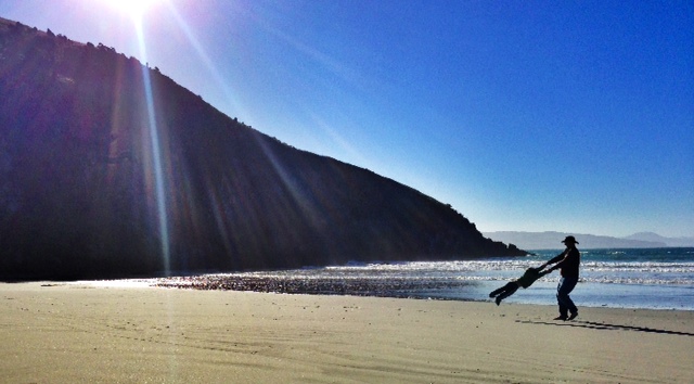 We have fabulous beaches within 20 traffic free minutes of our house. We try to make good use of every lovely day. A fresh baked foccaccia and some coffee for lunch and went to the beach. Usually we have the whole thing to ourselves – clear blue water, clear pollution free skies, clean sand, champagne quality air to breathe – another day in paradise! ( I have to rave now before winter sets in 😉 )