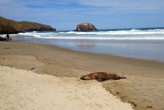 If one had a bucket list of animals one can be chased by, mine would have a few ticks already! Elephant – tick (but, I was in a car ). Rhino – almost tick ( we were told which way to run should the wind turn, so it could have happened) . Humongous sea lion – Yup! It emerged from the surf a few meters away from where we were peacefully having a coffee causing us to grab the baby , cameras and picnic things and run. He followed us and almost caught up when we doubled back around a volcanic rock an he continued on wondering where we had gone. He was not the only sea lion on the beach, one was sleeping on its back in the sand and another seemed to try and kill a smaller animal by lying on top of it and biting it. All very exciting – who needs Bondi’s cafes if one could have a wild beach in Dunedin.