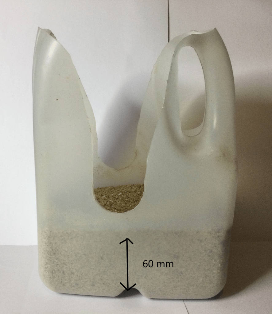 - Fill the feeder to a depth of approximately 60 mm, which is about 10 mm below the bottom of the 35 mm hole