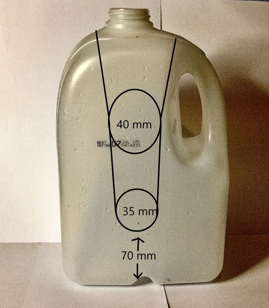 - Drill a 35 mm hole approximately 70 mm from the bottom of the bottle.