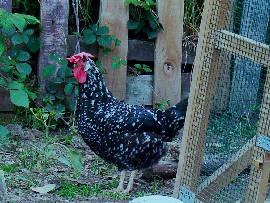 The Assistant Manager of the Backyard, the rooster named Alvin, passed away today. He was a great representative of the Ancona breed, and, above all he had personality and presence. He was like a friend and kept me company as I toiled in the yard. I tried everything I could to save him – regular worming, the best food, fresh water, warm house, company and ……free range access to the garden during the day. The last part is what did him in, I think. Alvin loved picking up every little thing he saw on the ground, working over the garden from end to end. In my efforts to establish a vegetable garden, turning over the soil to work in compost and lime as well as manure and I keep finding rubbish – bottles with dubious contents still in them, plastic, strange substances and whatnot. I cart everything away on discovery but that has not helped.