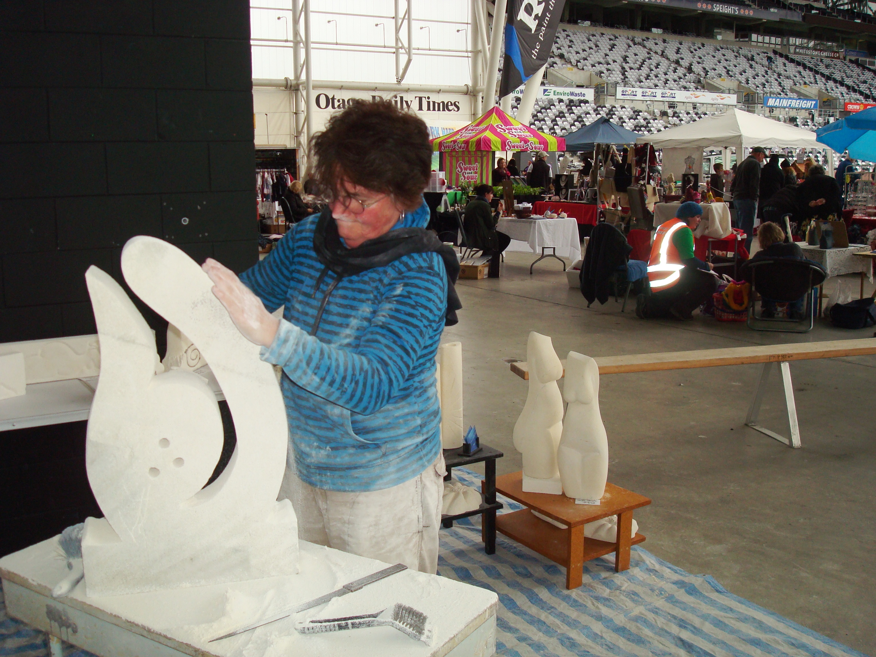 Because it was quieter today I could wander around a bit and have a look at the local artists who work on site. Suzanne Emslie from SOFT CURVES sculpts her lovely stone figures at the markets every week. Have a look at her facebook page https://www.facebook.com/suzanne.emslie and her phone number is 027 739 6531