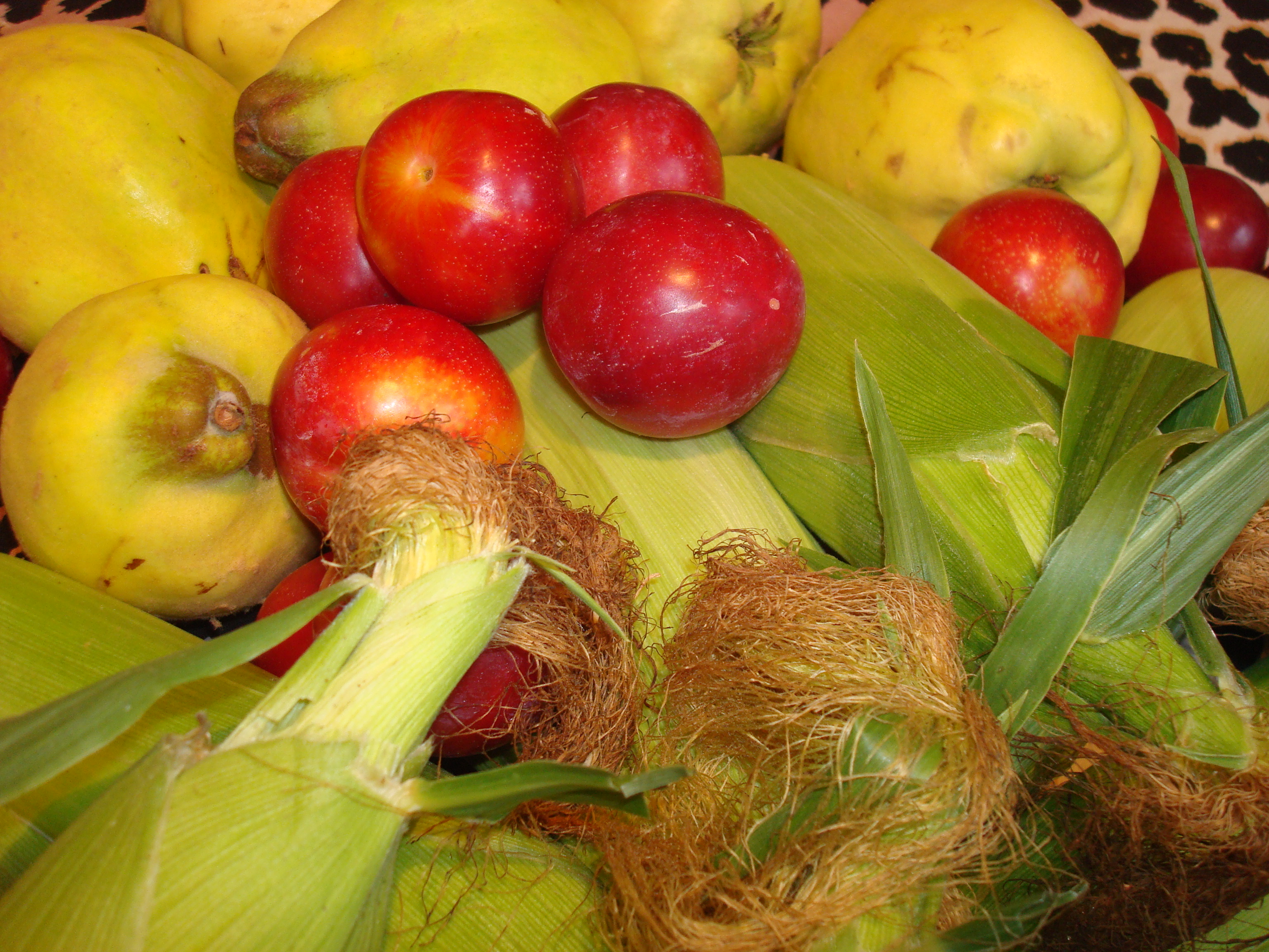 The fruit farmer had lovely large quinces as promised for a very good price, and he will be picking quinces for a few weeks from now on. He also brought fresh corn that he had picked the night before, sweet red plums. I could not resist and brought a lot of things home.