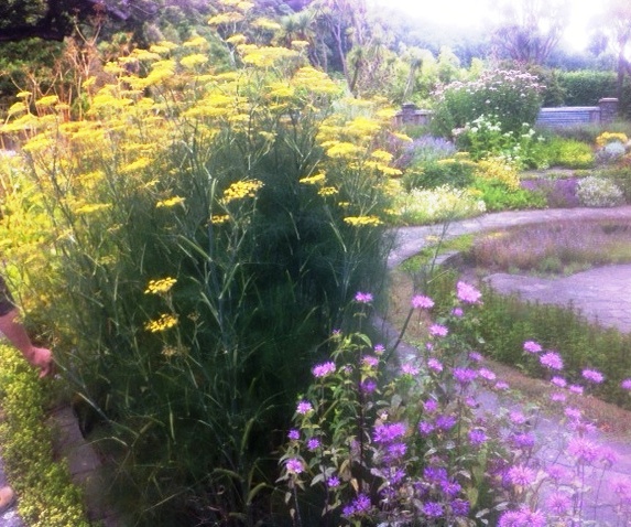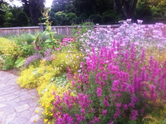 We live close enough to include the Gardens in our regular walks. In the beginning we spent time in the herb garden to see what grows well in this climate and what does not so we could plan our own garden. Today went to see the garden in full flower, and spent a very happy time sniffing and nibbling at a leaf or two and marveling at how beautiful a herb garden can be. The light was very subdued, a typically cloudy but warm summers day, with some mist on the tops of the hills, not ideal for taking pictures